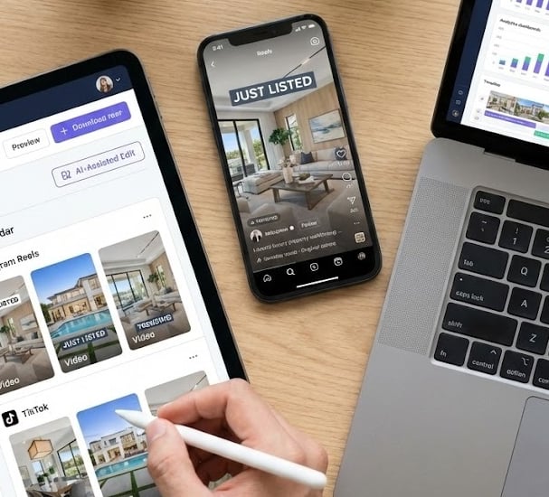 Our remote workflow leverages AI-assisted editing tools to accelerate production, ensuring your Reels and visuals are dynamic, engaging, and ready to capture attention while the listing is still fresh. We turn passive scrolling into active interest