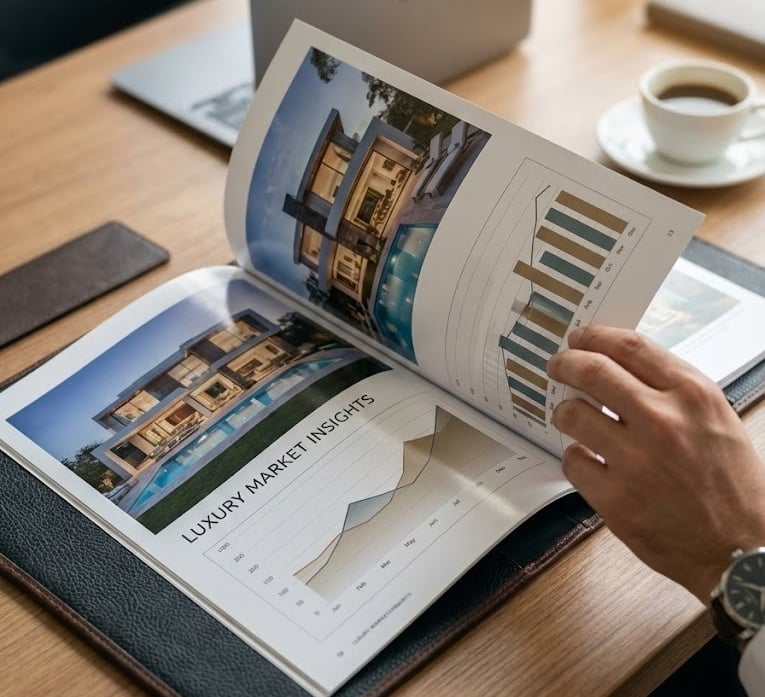 Position yourself as the undisputed authority with editorial-quality resources. We design authoritative buyer’s guides and relocation e-books that function as powerful lead-generation tools. By combining strategic editorial layout with AI-enhanced data visualization, we turn your raw market knowledge into polished, downloadable assets.